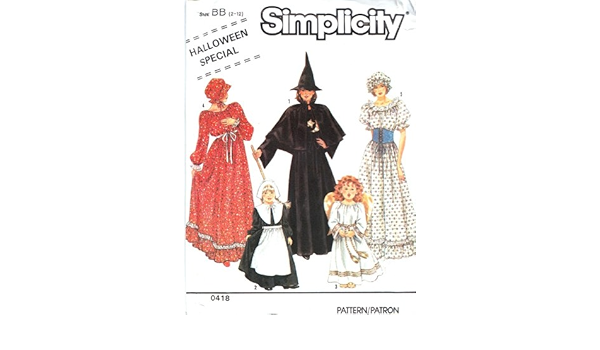 Simplicity 0418 Witch Angel Pilgrim Costume Pattern Uncut Arts Crafts Sewing Amazon Com